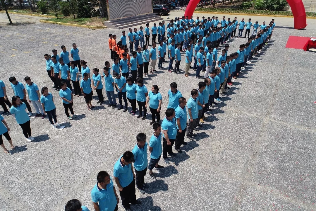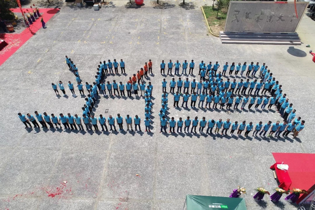 基地的員工們穿著統(tǒng)一,企業(yè)色彩錯落分明,組成“民樂”字樣整齊列隊,展示出斗志昂揚的精神風(fēng)貌。
