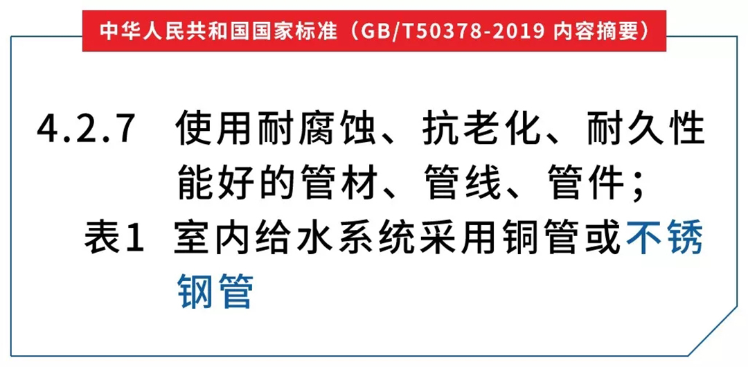 《綠色建筑評價標(biāo)準(zhǔn)》作為規(guī)范和指導(dǎo)中國綠色建筑發(fā)展的根本性技術(shù)標(biāo)準(zhǔn),在引導(dǎo)中國綠色建筑實現(xiàn)從無到有、從少到多、從個別城市到全國范圍,從單體到城區(qū)、到城市的規(guī)模化發(fā)展發(fā)揮了重要作用。此次,該標(biāo)準(zhǔn)對室內(nèi)給水管道的明確要求也在很大程度上表明了國內(nèi)建筑對于金屬管材在水質(zhì)保護(hù)優(yōu)勢上的認(rèn)可!