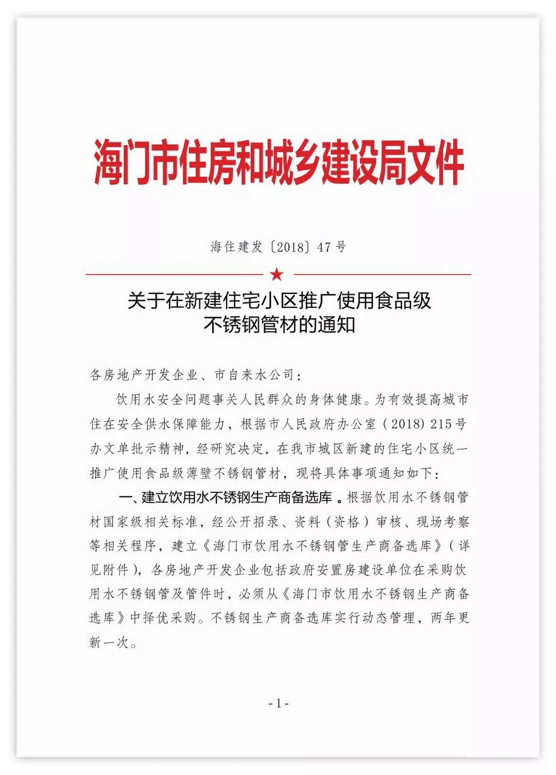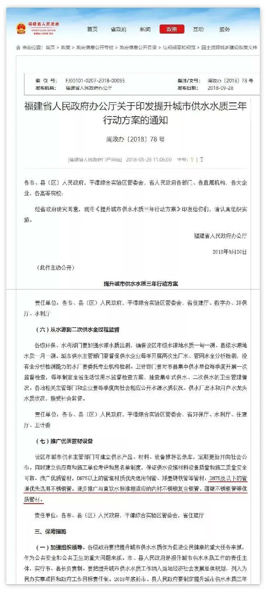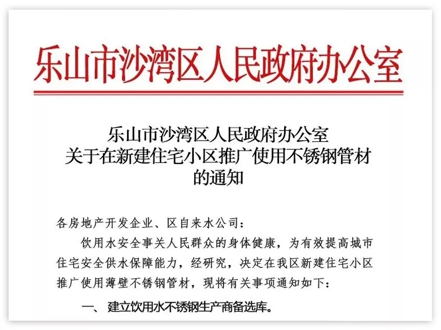 十九大報告中指出,中國社會主要矛盾已經(jīng)轉(zhuǎn)化為人民日益增長的美好生活需要和不平衡不充分發(fā)展之間的矛盾。不銹鋼水管是滿足人民追求美好生活的好產(chǎn)品,也是改革中城市化進(jìn)程的好供給。近年來,國家以及有關(guān)部門高度重視居民用水安全和飲水衛(wèi)生,相繼發(fā)布“應(yīng)用不銹鋼管道”的相關(guān)政策以及公告。