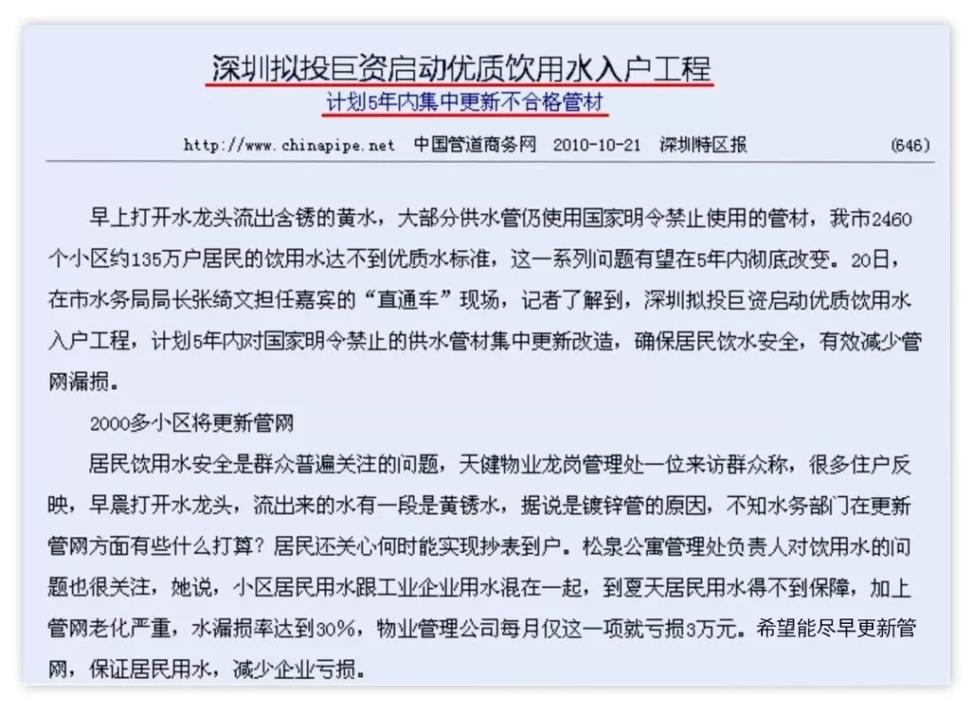 深圳擬投巨資啟動優(yōu)質(zhì)飲用水入戶工程