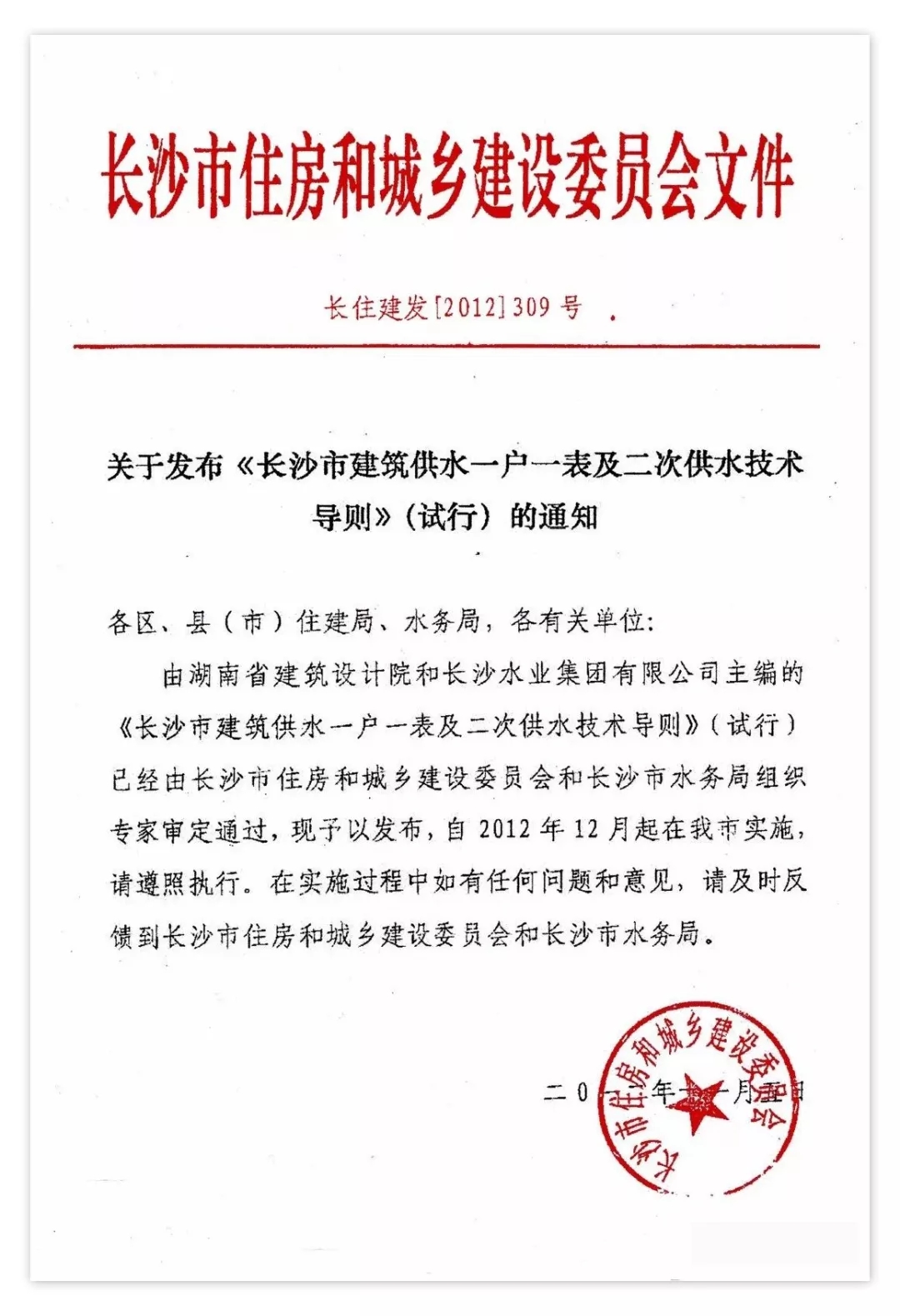 長沙市建筑供水一戶一表及二次供水技術(shù)導(dǎo)則
